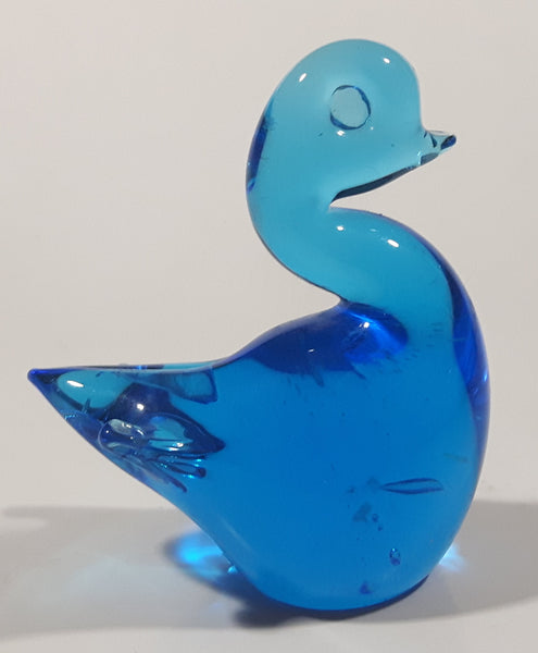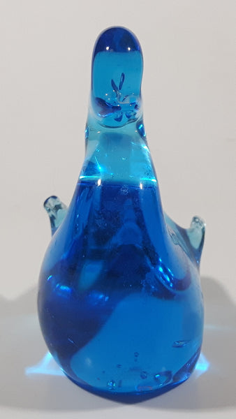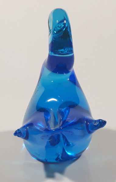 Cute Blue Art Glass Paperweight Swan Bird 3 1/4" Tall
