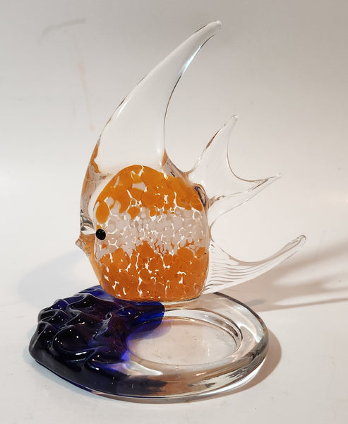 Partylite Art Glass Clear Orange and White Tropical Fish and Blue Water 5 1/4" Tall Tealight Candle Holder