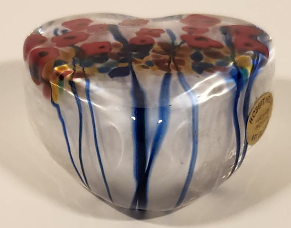 Rare Robert Held Signed Red Poppy Flowers Themed Heart Shaped Art Glass Paperweight