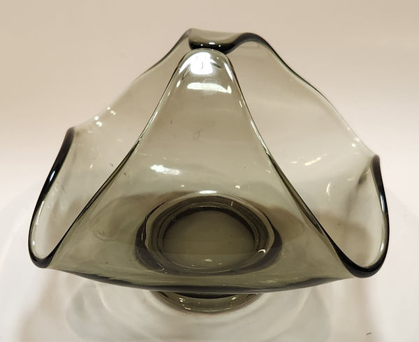 Vintage MCM Dark Grey Smoke Tinted Art Glass Candy Nut Dish Basket Bowl with Handle Tips Touching