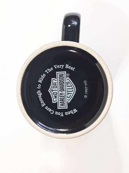 1997 H-D Harley Davidson Motor Cycles Black Ceramic Coffee Mug Cup
