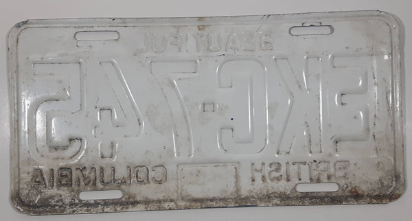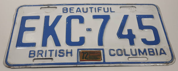 1972 Beautiful British Columbia White with Blue Letters Vehicle License Plate EKC 745