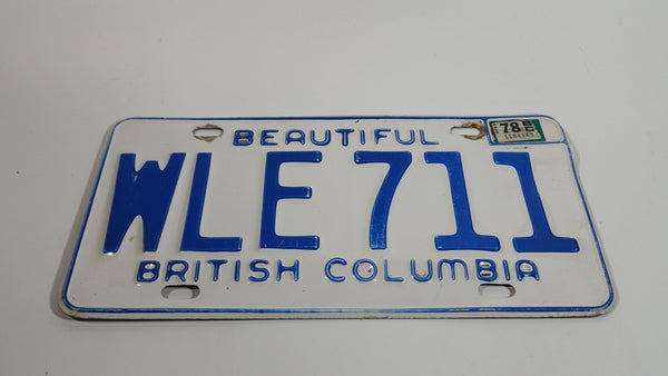 1978 Beautiful British Columbia White with Blue Letters Vehicle License Plate WLE 711