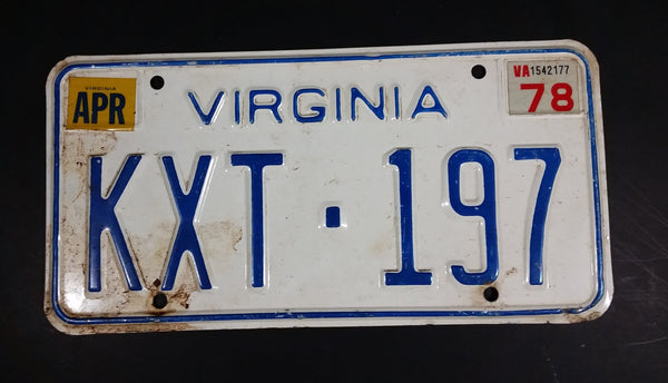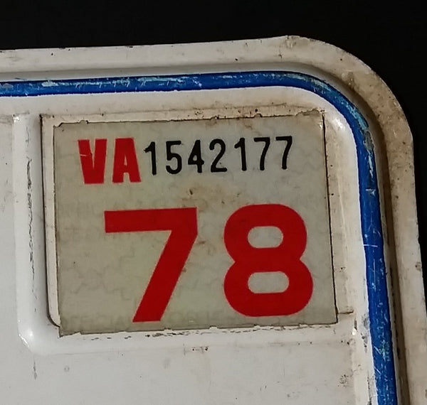1978 Virginia White with Blue Letters Vehicle License Plate