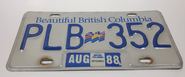 1988 Beautiful British Columbia White with Blue Letters Vehicle License Plate PLB 352