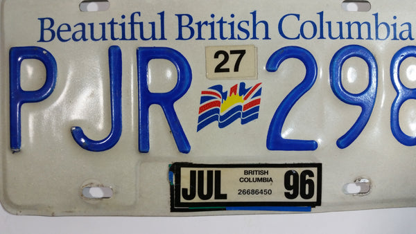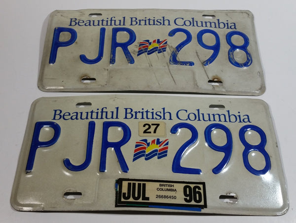 1996 Beautiful British Columbia White with Blue Letters Vehicle License Plate Set of 2 PJR 298