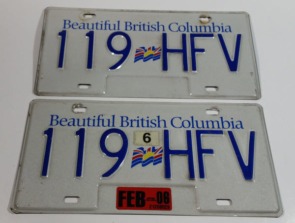 2006 Beautiful British Columbia White with Blue Letters Vehicle License Plate Set of 2 119 HFV
