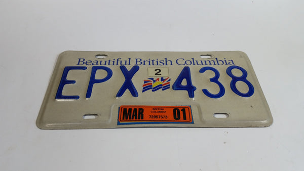 Beautiful British Columbia White with Blue Letters Vehicle License Plate EPX 438