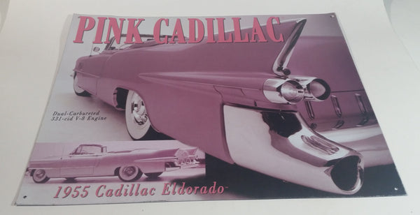 Pink 1955 Cadillac Eldorado Dual-Carbureted  331-cid V-8 Engine Tin Metal Sign 12" x 15"
