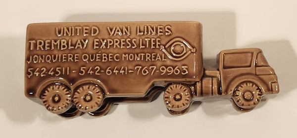 Rare Vintage United Van Lines Tremblay Express LTEE Jonquiere Quebec Montreal Brown Semi Truck Shaped Ceramic Ashtray