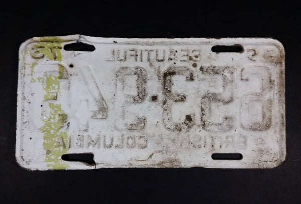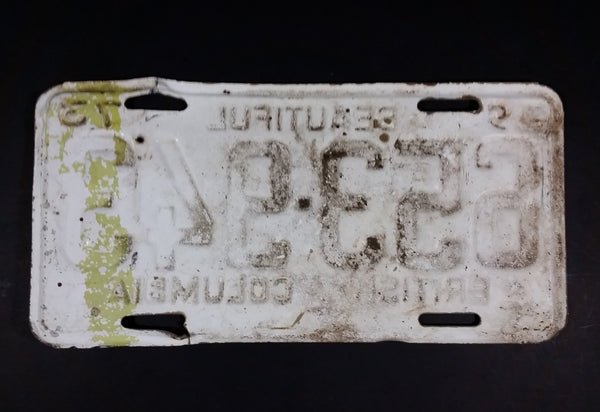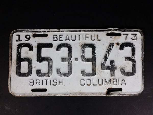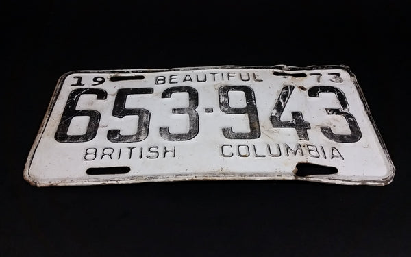 Vintage 1973 Beautiful British Columbia White with Black Letters Vehicle License Plate
