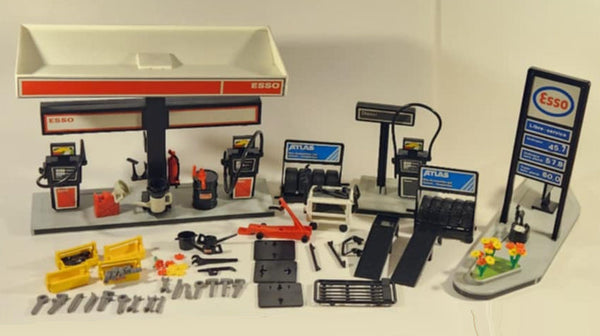 Vintage 1981 Playmobile Esso Gas Service Station Incomplete Set (French Version)