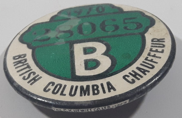 Vintage 1970 British Columbia Class B Chauffeur License Badge Pin 28065