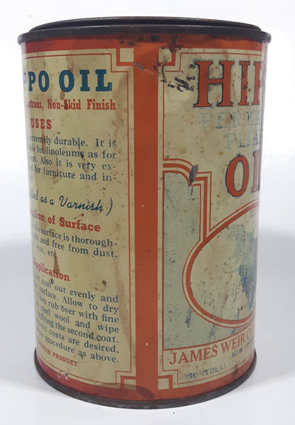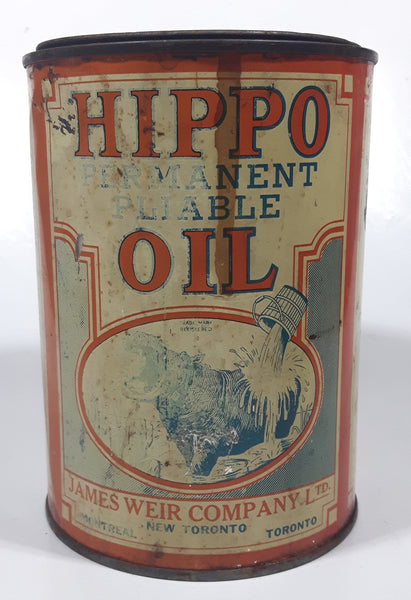 Antique James Weir Company Ltd Toronto Hippo Oil Permanent Pliable 4 1/2" Tall Metal Oil Can FULL