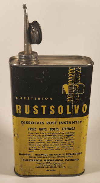 Vintage 1950s Chesterton Rustsolvo Dissolves Rust Instantly Yellow and Black On Quart Metal Can Everett 49, Mass., U.S.A.