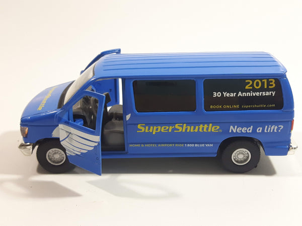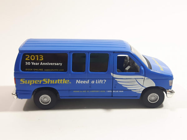 2013 Tins Toys T658 / T634 Ford E Series E-350 Cargo Van Super Shuttle 30 Year Anniversary Blue 1:43 Scale Pullback Friction Motorized Die Cast Toy Car Vehicle with Opening Doors