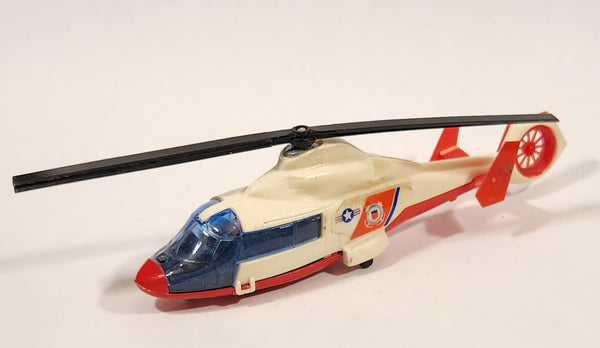 Majorette No. 322 Dauphin 2 SA 365 Coast Guard Helicopter Red White 1/87 Scale Plastic Toy Aircraft with Retractable Landing Gear
