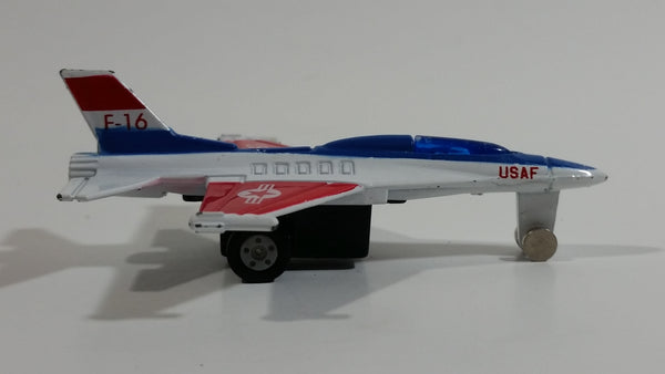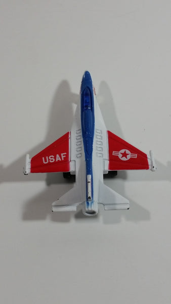 USAF F-16 Fighter Jet Red White Blue Pullback Motorized Friction Die Cast Toy Car Vehicle