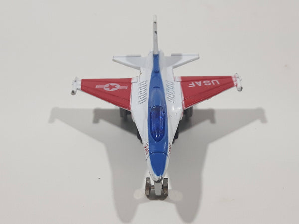 USAF F-16 Fighter Jet Red White Blue Pullback Motorized Friction Die Cast Toy Car Vehicle