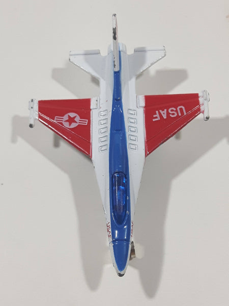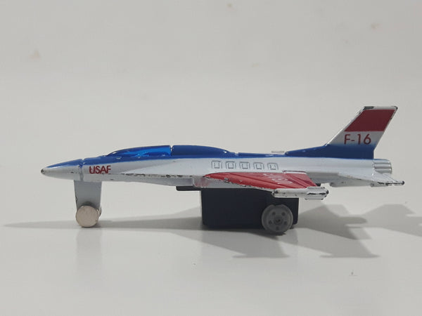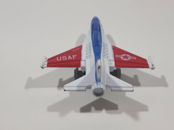 USAF F-16 Fighter Jet Red White Blue Pullback Motorized Friction Die Cast Toy Car Vehicle