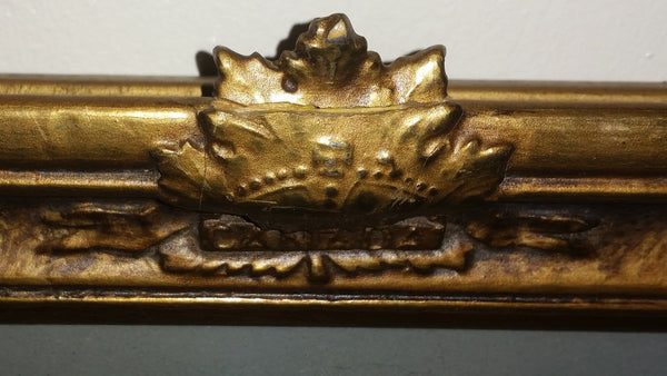 Crack on Maple Leaf but still attached. Made of wood with old brown paper backing.