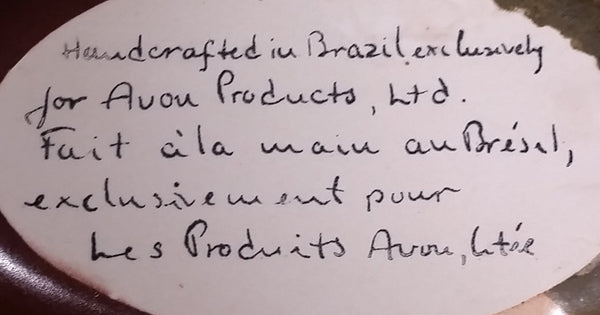 Handcrafted in Brazil exclusively for Avon Products Ltd. Hand painted with no chips, cracks, crazing. Contains the original sticker inside. Excellent, like new condition.