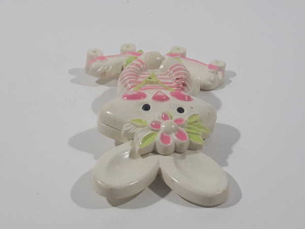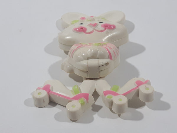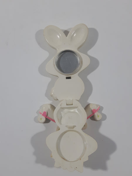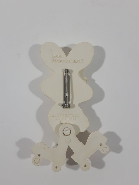 Vintage 1974 Avon Easter Bunny with Roller Skates Shaped Solid Glace Scented Perfume Fragrance Compact White Plastic 3 3/8" Brooch Pin