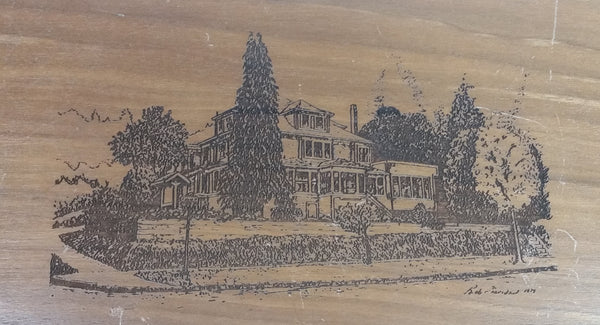 The wood has some wear to it and the back has a card from the engraver. View photos.