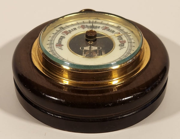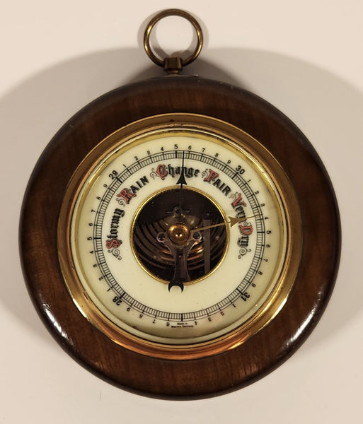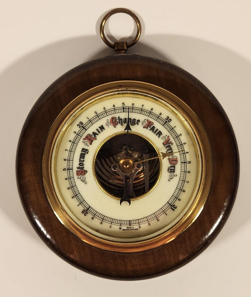 Vintage 5" Diameter Wooden Cased Weather Barometer Made in Western Germany