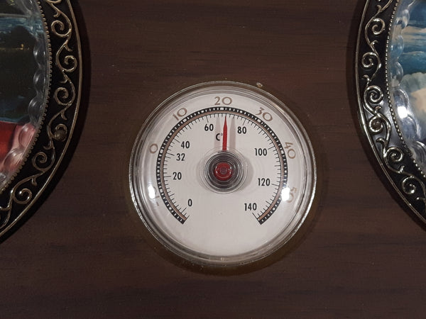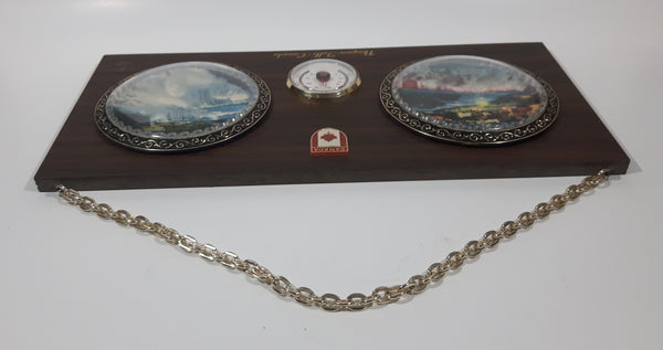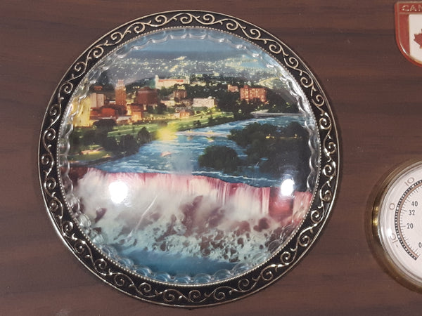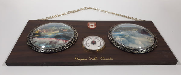 Vintage A&F Canada Niagara Falls Canada Waterfall Day and Night Round Domed Photos with Thermometer 6" x 13" Wood Plaque with Chain Hanging
