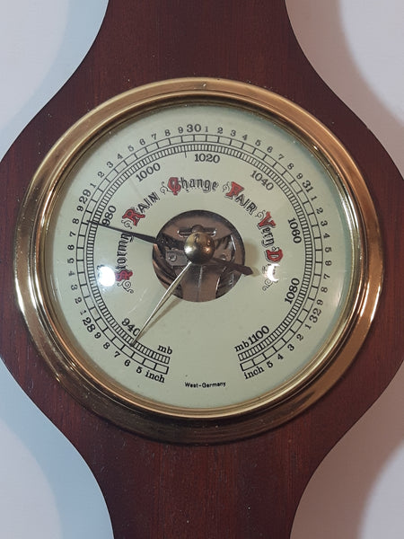 Vintage Banjo Style 12 3/4" Wood Cased Weather Station Thermometer, Barometer Hygrometer Made in West Germany