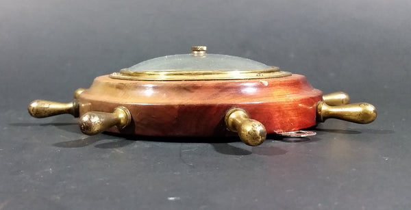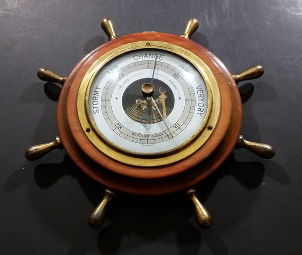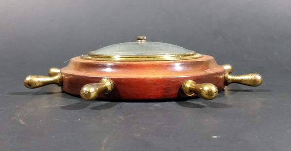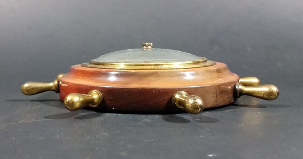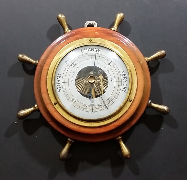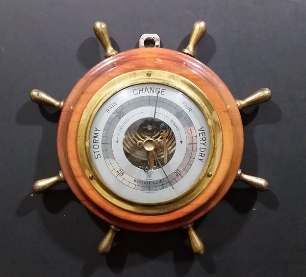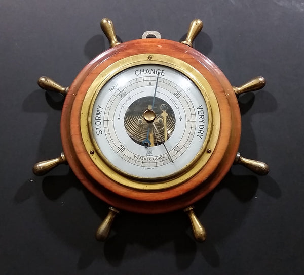 Vintage JG Gischard Aneroid Ships Wheel Barometer - Wood, Brass, Metal Face - Germany