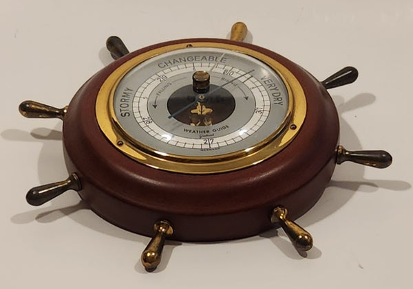 Vintage JG Gischard Weather Guide Aneroid Wood Cased Brass Trim Ships Wheel Barometer Made in Germany