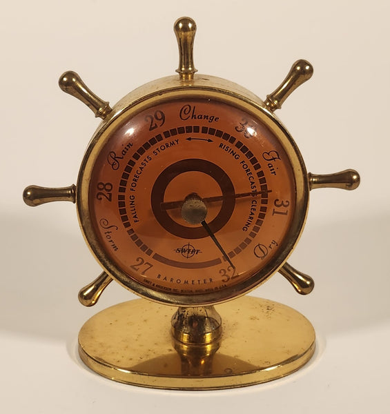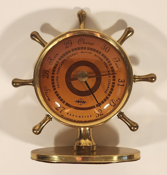 Vintage Swift & Anderson Ship's Wheel Brass Metal Barometer Made in Boston