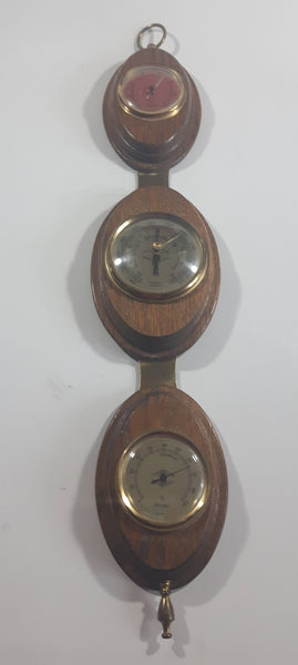 Vintage Wood and Brass Hygrometer Barometer Thermometer Weather Station Made in West Germany