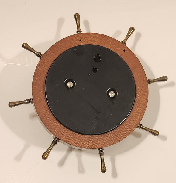 Vintage Wood Cased Brass Trim Ships Wheel Barometer Made in West Germany