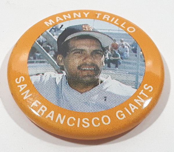 1984 MLBPA Major League Baseball Fun Foods Manny Trillo San Francisco Giants No 57 of 133 2nd Base Avg .254 Orange Metal Button Pin