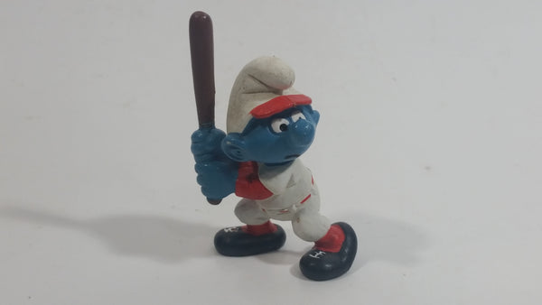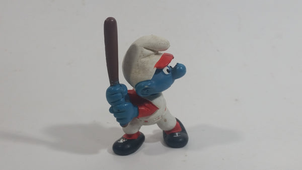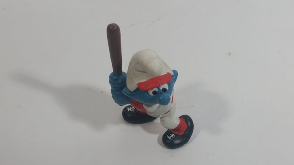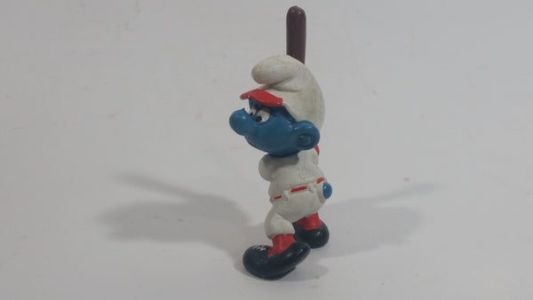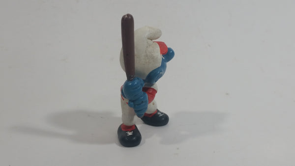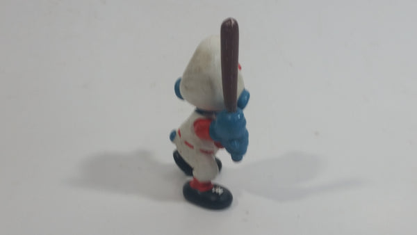 Vintage 1980 Peyo Smurf Character Baseball Player Holding Bat PVC Toy Figure