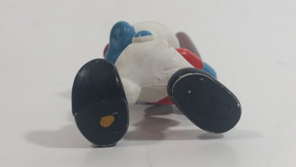 Vintage 1980 Peyo Smurf Character Baseball Player Holding Bat PVC Toy Figure