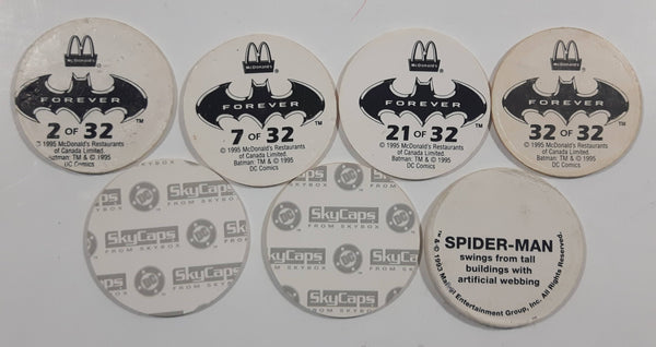 1990s Mixed Batman Forever, SkyCaps, Spider-Man Pogs / Caps Lot of 7