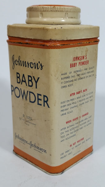 Vintage Johnson's Baby Powder Active Ingredient Talc 9 Ozs. Tin Container Johnson & Johnson Empty