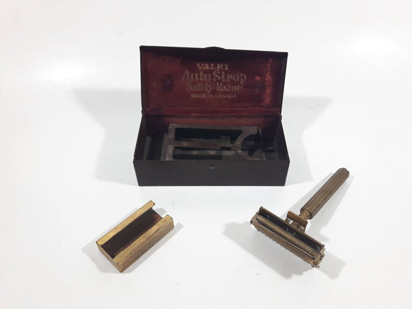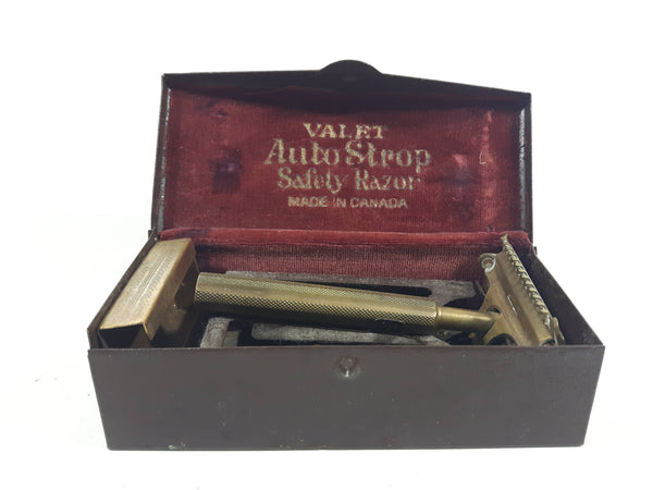 Antique 1920s VALET Auto Strop Safety Razor Gold Plated in Metal Case Made in Canada