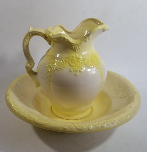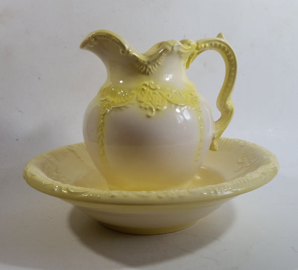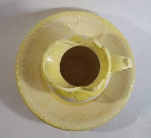 Vintage 1970s Arnels Yellow and White Ceramic Glazed Pitcher and Bowl