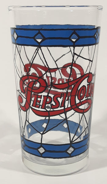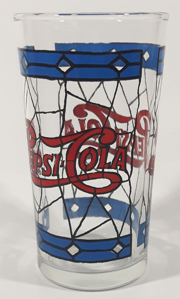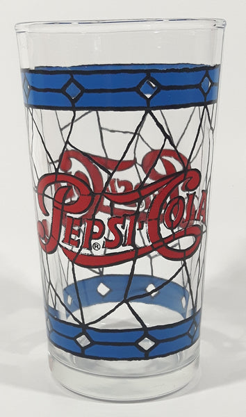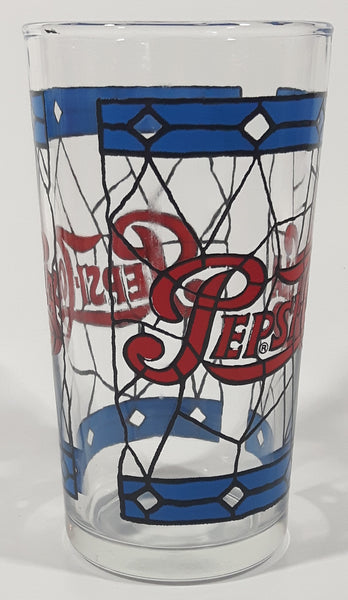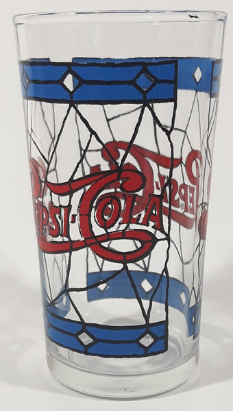 Vintage Pepsi Blue and Red Stained Glass Style 5" Tall Glass Cup