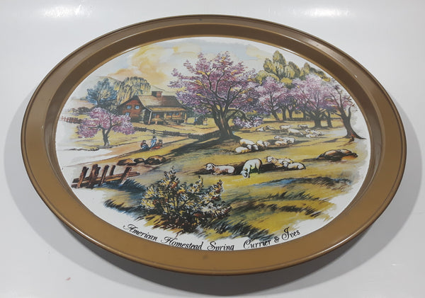 Vintage American Homestead Spring Currier & Ives 12 5/8" Metal Beverage Serving Tray