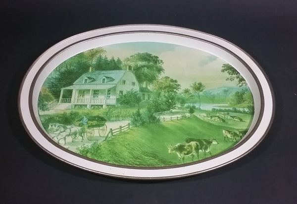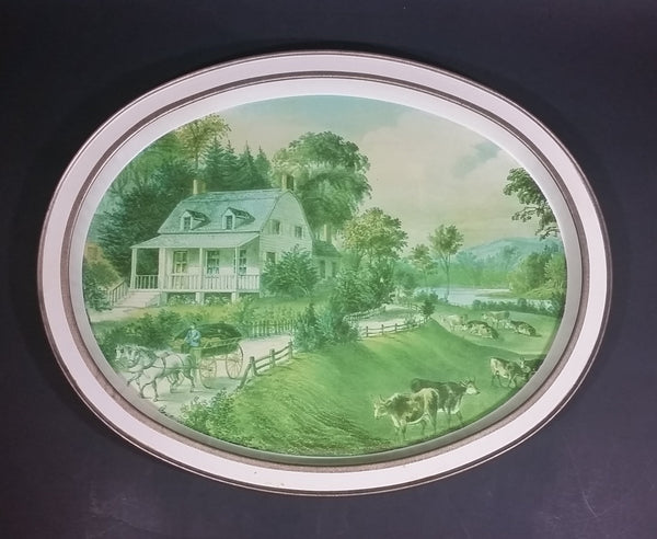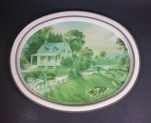 Vintage Currier and Ives "The American Homestead - Summer" Print Oval Tray