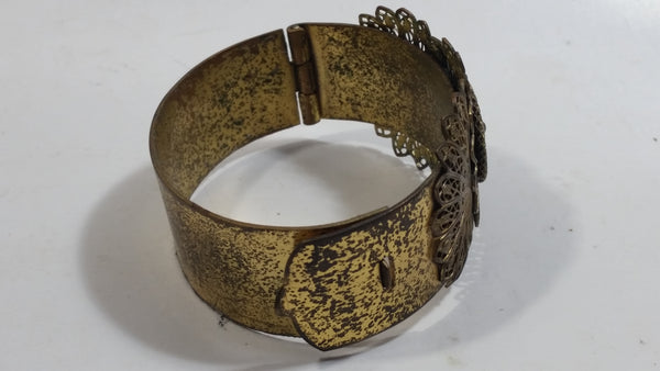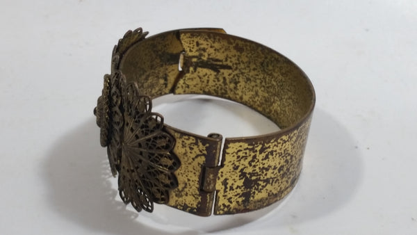Antique African Nigerian Sunflower Brass Bangle Bracelet