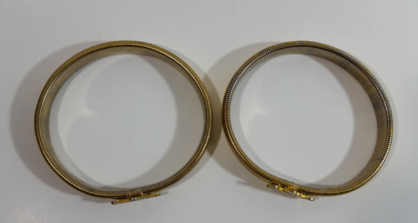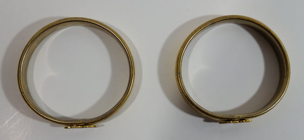 Set of 2 Butterfly Themed Brass Gold Tone Stretchy Spring Like Metal Bracelets
