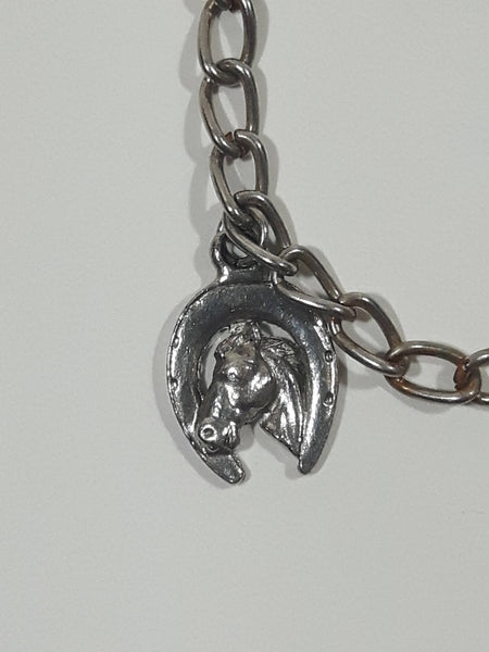 Western Horse and Horse Shoe Themed 5 1/2" Long Metal Bracelet