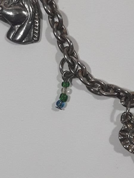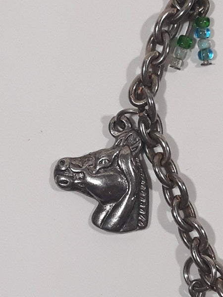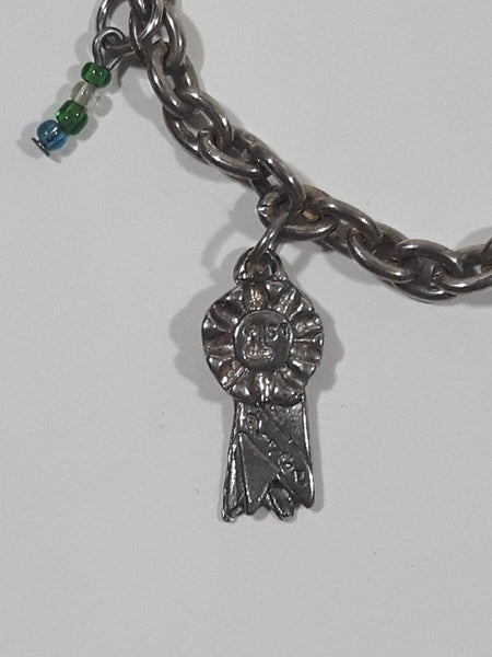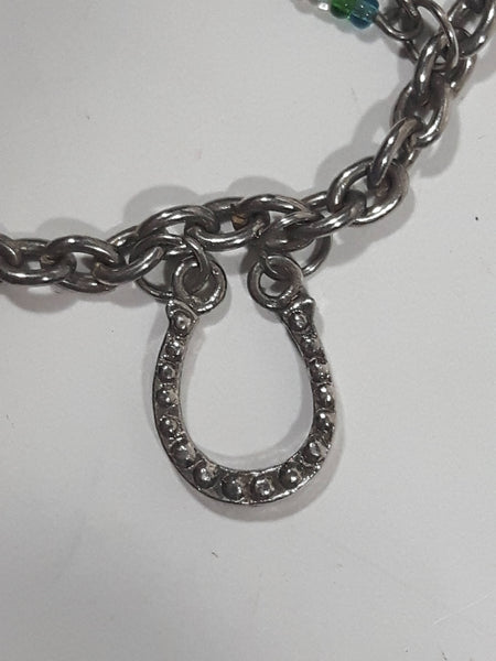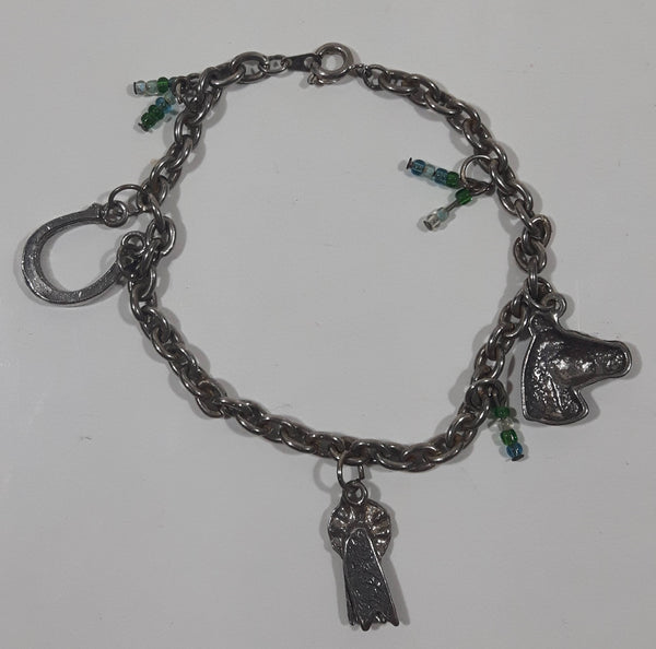Western 1st Place Ribbon, Horse, and Horse Shoe Themed 6 1/2" Long Metal Bracelet with Small Beads